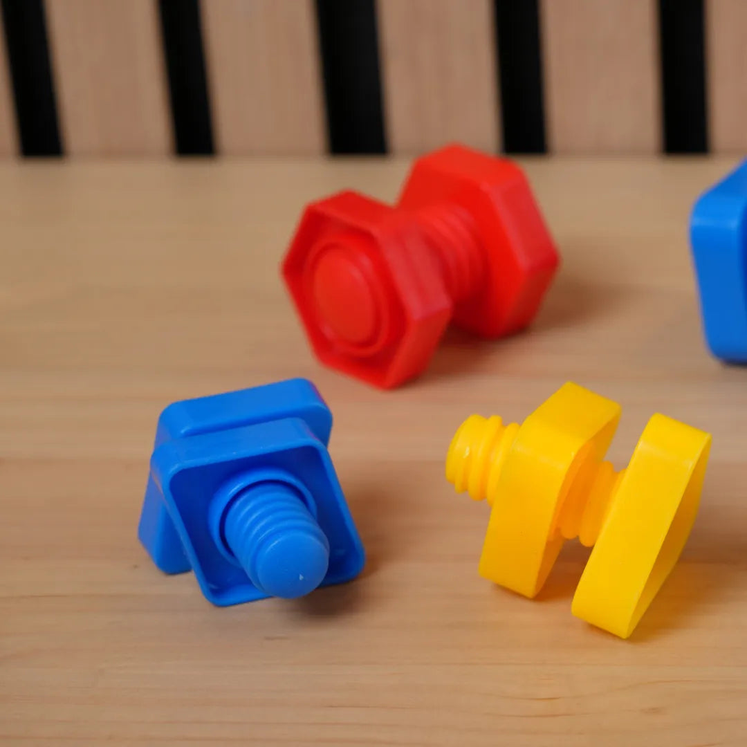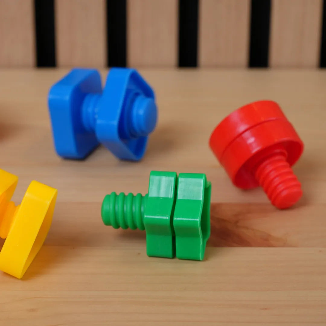 Spark your toddler’s curiosity on the go with our Nuts & Bolts Screw-On Toy Set. This 6-piece travel activity features three chunky shapes—diamond, star, and circle—that little hands can easily grasp and twist. Crafted from durable, BPA-free plastic, it helps develop fine motor skills and hand-eye coordination without a single screen in sight. The compact design tucks neatly into diaper bags or backpacks, making it the perfect screen-free travel toy for ages 1–3.